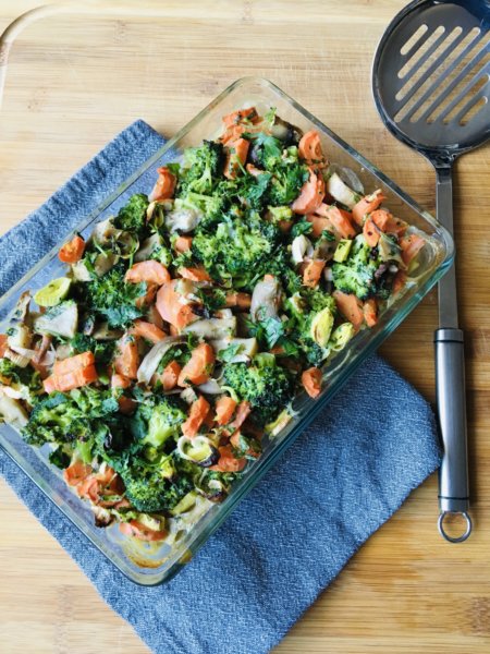 Elkészítheted akármilyen zöldségből, amit találsz otthon. Egyetlen dolgot érdemes beszerezni ez pedig a rizstejszín vagy zabtejszín. De ha nem szeretnéd ezt használni, vagy nem kapható ott ahol élsz, akkor sima besamellel is működhet, a lényeg, hogy hígabbra készítsd el (természetesen növényi tejből és margarinból/kókuszolajból).