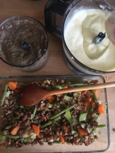 - 2 bögre főtt lencse