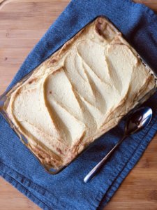 A tetejére halmozd a karfiolpürét és süsd meg 190 fokon kb 30-40 percig.